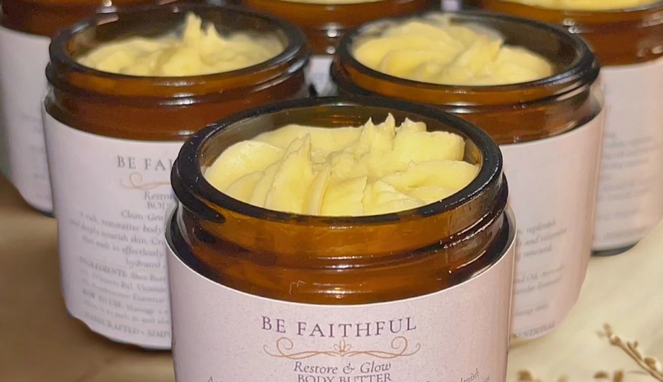 A gentle, comforting body butter handmade for skin that needs extra care.